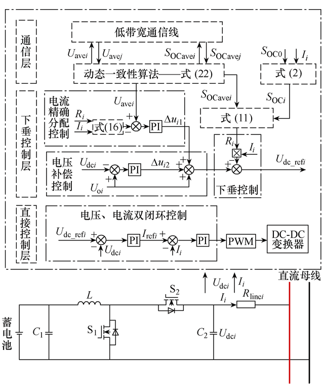 他們指出,以改變下垂系數(shù)為基礎,通過前期控制因子調節(jié)系統(tǒng)最大輸出功率,后期加速因子放大均衡后期荷電狀態(tài)的差值,能夠達到加快荷電狀態(tài)均衡的目的。另外,引入容量權重因子,合理分配不同容量儲能單元的功率,使其趨于容量比,旨在有效彌補各儲能單元間的容量差異,有助于確保各個儲能單元在充電和放電過程中的合理參與,提高系統(tǒng)的整體效能和使用壽命。