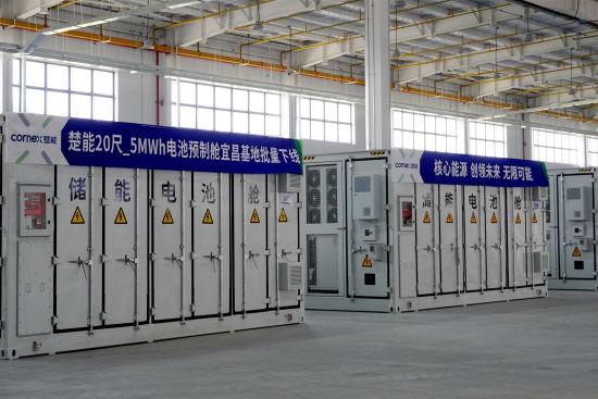 自去年8月投產以來,宜昌楚能已生產近4GWh電芯產品,一直以單電芯產品形式進行交付。此次5MWh電池集裝箱下線交付,標志著宜昌楚能產品交付能力邁向新臺階。目前,一個集裝箱車間一天能組建2至3個電池集裝箱產品。