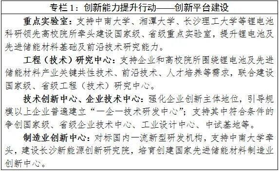 充分發(fā)揮長(zhǎng)株潭國(guó)家自主創(chuàng)新示范區(qū)、湘江新區(qū)、湖南自貿(mào)區(qū)等國(guó)家級(jí)平臺(tái)優(yōu)勢(shì),支持長(zhǎng)沙加快引進(jìn)動(dòng)力電池、儲(chǔ)能電池關(guān)鍵材料及電芯電池高端制造等產(chǎn)業(yè)鏈關(guān)鍵環(huán)節(jié)項(xiàng)目和上下游優(yōu)質(zhì)企業(yè),加快產(chǎn)業(yè)創(chuàng)新平臺(tái)、中試測(cè)試平臺(tái)、檢驗(yàn)檢測(cè)平臺(tái)建設(shè),打造全球先進(jìn)儲(chǔ)能材料研發(fā)中心城市,株洲、湘潭配套建設(shè)一批電池正負(fù)極、電芯電池、電池回收利用等項(xiàng)目,強(qiáng)化三市產(chǎn)業(yè)協(xié)同效應(yīng),引領(lǐng)和帶動(dòng)全省鋰電池及先進(jìn)儲(chǔ)能材料產(chǎn)業(yè)高質(zhì)量發(fā)展。