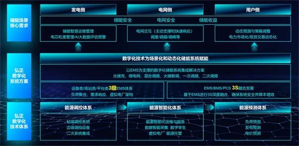 弘正儲(chǔ)能自成立以來,就把數(shù)字化作為儲(chǔ)能解決方案的切入點(diǎn),形成了能源調(diào)控、能源智能化和能源預(yù)測三大數(shù)字化儲(chǔ)能體系,結(jié)合自主研發(fā)的EMS能量管理系統(tǒng)強(qiáng)大的數(shù)據(jù)采集、轉(zhuǎn)發(fā)及邊緣計(jì)算能力,能夠充分滿足虛擬電廠對站點(diǎn)的數(shù)據(jù)采集、策略控制的各類要求,保障儲(chǔ)能設(shè)備能夠順暢地接入虛擬電廠平臺(tái)。