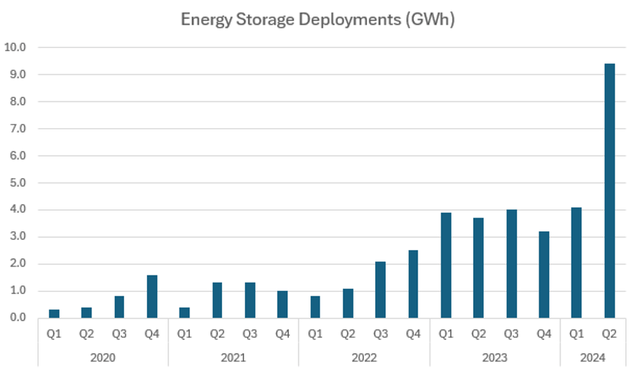 根據(jù)最新公布的數(shù)據(jù),第二季度,該公司儲(chǔ)能產(chǎn)品部署量升至9.4GWh,創(chuàng)下了公司紀(jì)錄,是其之前最大季度部署量的兩倍多,同比增長(zhǎng)157%。