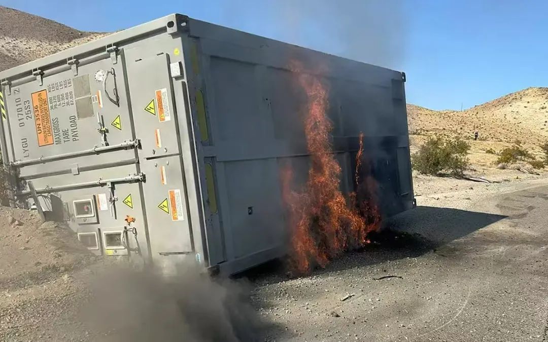 事故起因是一輛載有集裝箱儲(chǔ)能設(shè)備的卡車翻覆后,電池集裝箱起火,所幸目前公路已恢復(fù)通行。