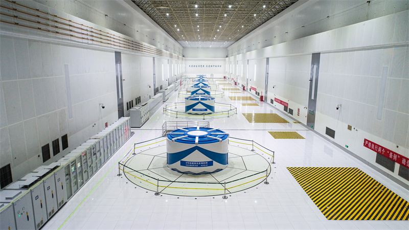 走進文登抽水蓄能電站地下廠房,潔白的大廳內(nèi)6臺機組一字排開,機罩側(cè)面描繪著藍色波濤圖形。2023年9月19日,國網(wǎng)新源山東文登抽水蓄能電站最后一臺機組——6號機組正式投入商業(yè)運營,標志著山東省內(nèi)裝機規(guī)模最大、膠東地區(qū)首座抽水蓄能電站全面投產(chǎn)發(fā)電。