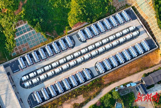 8月22日,通道侗族自治縣塘沖儲能電站,一排排電池艙在陽光映照下蔚為壯觀。