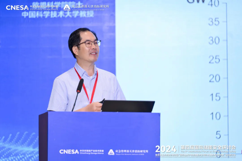 歐盟科學(xué)院院士、中國(guó)科學(xué)技術(shù)大學(xué)教授孫金華在報(bào)告中提倡,針對(duì)目前電化學(xué)儲(chǔ)能一“鋰”獨(dú)大的局面,行業(yè)要百花齊放,發(fā)展鈉離子電池、液流電池等多元化儲(chǔ)能技術(shù)。同時(shí),針對(duì)儲(chǔ)能電站安全,他提出了多重防控體系。一是要提升電池本體安全,降低事故概率;二是要做好電池故障隱患的預(yù)測(cè)預(yù)警,保證過(guò)程安全,將火災(zāi)事故扼殺在萌芽狀態(tài);三是要有高效的消防安全技術(shù),實(shí)現(xiàn)快速滅火抗復(fù)燃,保證小火不成災(zāi),目前三個(gè)方面均取得了系列進(jìn)展。