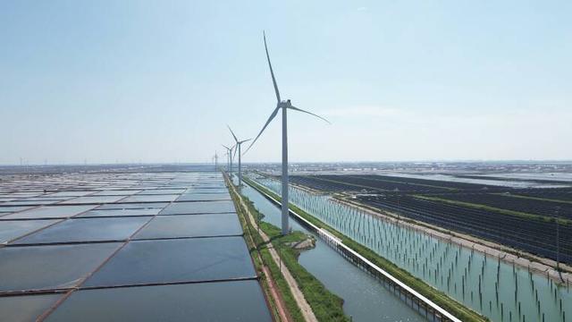 該項(xiàng)目作為魯北基地首家投產(chǎn)運(yùn)營的風(fēng)光儲試點(diǎn),創(chuàng)新性地采用“漁光互補(bǔ)”“鹽光互補(bǔ)”發(fā)展模式,實(shí)現(xiàn)了鹽光、漁光與儲能的集中連片、立體高效利用,標(biāo)志著綠色發(fā)展的新實(shí)踐。而幾年前,這片區(qū)域還是一片荒蕪的鹽堿地,營里鎮(zhèn)經(jīng)濟(jì)發(fā)展辦副主任王恒回憶,這里曾以鹽田和養(yǎng)殖灘涂為主,產(chǎn)業(yè)單一、發(fā)展模式傳統(tǒng),海洋資源利用率低,限制了區(qū)域的綜合發(fā)展。
