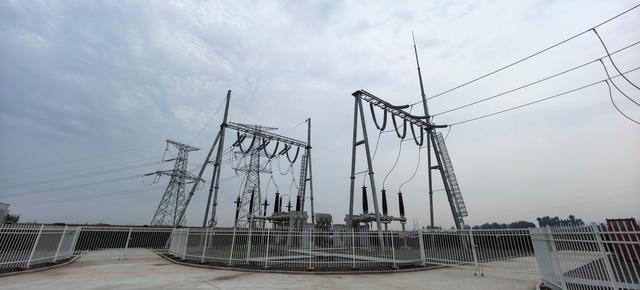 潞城仁和儲能電站是一個電化學儲能電站,與埋在地下的飛輪裝置不同,電化學儲能的裝置都在地面以上,園區(qū)主要分為兩個部分:升壓站和儲能區(qū)。升壓站內(nèi)的幾個立柱支撐起了進出能量的電纜,像一座橋梁連接起外部電力系統(tǒng)與電站儲能區(qū)之間的能量交換。