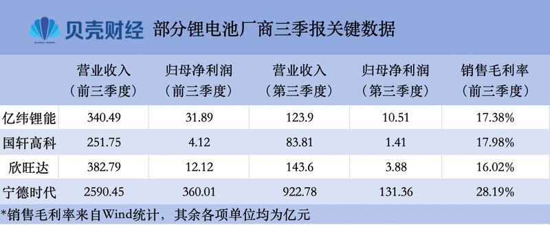 隨著鋰電池廠商三季報披露收官,同處于二線陣營的億緯鋰能、國軒高科、欣旺達業(yè)績表現(xiàn)不一,動力電池業(yè)務的毛利率普遍同比下降。