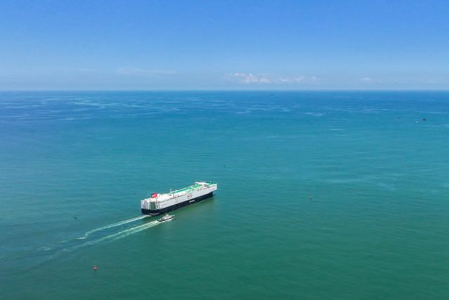 在深圳市深汕特別合作區(qū)小漠國(guó)際物流港,首艘由國(guó)內(nèi)船廠建造的比亞迪滾裝運(yùn)輸船“開(kāi)拓者1號(hào)”鳴笛出海,劃開(kāi)一色的海天,向全球各大港口進(jìn)發(fā)。船上超5000臺(tái)搭載了廣東制造儲(chǔ)能電池的新能源汽車整齊排列,正踏浪奔赴全球各地。