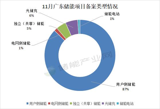 據(jù)儲(chǔ)能產(chǎn)業(yè)網(wǎng)統(tǒng)計(jì),2024年11月廣東儲(chǔ)能項(xiàng)目備案數(shù)量有196個(gè)(不包含制造類(lèi)、生產(chǎn)線(xiàn)和未公示規(guī)模的項(xiàng)目),其中用戶(hù)側(cè)/工商業(yè)/分布式儲(chǔ)能總共有171個(gè),占比高達(dá)87%,廣東工商業(yè)廠房較多,用戶(hù)側(cè)儲(chǔ)能發(fā)展具有廣闊潛力。
