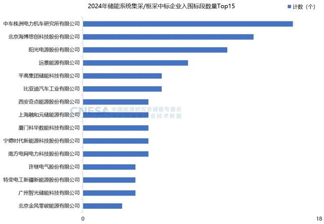 圖3:2024年儲能系統(tǒng)集采/框采中標(biāo)企業(yè)入圍標(biāo)段數(shù)量TOP15