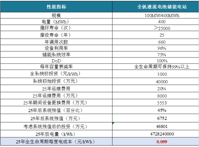4小時(shí)全釩液流儲(chǔ)能系統(tǒng)全生命周期度電成本