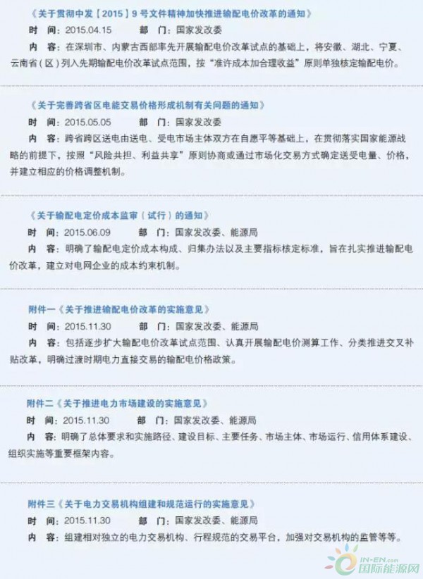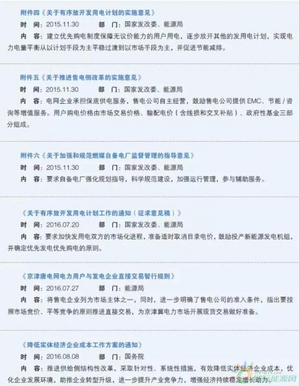 《電力發(fā)展“十三五”規(guī)劃》出臺,指出在電力體制改革方面,組建相對獨立和規(guī)范運行的電力交易機構,建立公平有序的電力市場規(guī)則,初步形成功能完善的電力市場。深入推進簡政放權。一是核定輸配電價。2017年底前,完成分電壓等級核定電網(wǎng)企業(yè)準許總收入和輸配電價,逐步減少電價交叉補貼。二是建立健全電力市場體系。建立標準統(tǒng)一的電力市場交易技術支持系統(tǒng),積極培育合格市場主體,完善交易機制,豐富交易品種。2016年啟動東北地區(qū)輔助服務市場試點,成熟后全面推廣。2018年底前,啟動現(xiàn)貨交易試點;2020年全面啟動現(xiàn)貨交易市場,研究風險對沖機制。三是組建相對獨立和規(guī)范運行的電力交易機構。四是有序放開發(fā)用電計劃。2020年前逐步取消優(yōu)先發(fā)電權以外的非調節(jié)性發(fā)電計劃。五是全面推進配售電側改革。2018年底前完成售電側市場競爭主體培育工作。