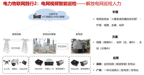 電網(wǎng)視頻智能巡檢:應(yīng)用基于華為昇騰AI芯片的Atlas系列產(chǎn)品方案,匹配桿塔、管廊、站所不同場景,通過對設(shè)備異常、環(huán)境風(fēng)險(xiǎn)、人員違規(guī)等的AI識別,將風(fēng)險(xiǎn)信息及時(shí)傳遞給視頻云中心,做到風(fēng)險(xiǎn)及時(shí)發(fā)現(xiàn),幫助客戶實(shí)現(xiàn)電網(wǎng)巡檢 “由人看變成機(jī)器自動識別”,解放電網(wǎng)巡檢人力,提高運(yùn)維效率,有效保障電網(wǎng)的安全穩(wěn)定運(yùn)行。