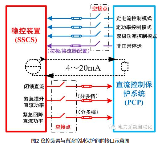 是指在“純開關量接口”的基礎上,穩(wěn)控裝置的“開關量”分檔控制命令,變?yōu)榱恕澳M量”無極控制。這里的“模擬量”是指工業(yè)控制系統中常用來傳輸非電物理量(如溫度、壓力、角度等)的4~20mA電流信號,如圖2虛線部分所示。
