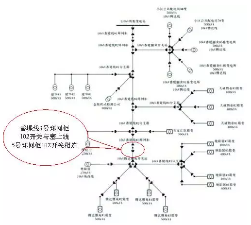 1)2015年7月24日18∶00合上賽上線5號環(huán)網(wǎng)柜102開關,斷開香堤線3號環(huán)網(wǎng)柜101開關,(從所街變香堤線轉移約3850kVA居民負荷至沙洲變?nèi)暇€);