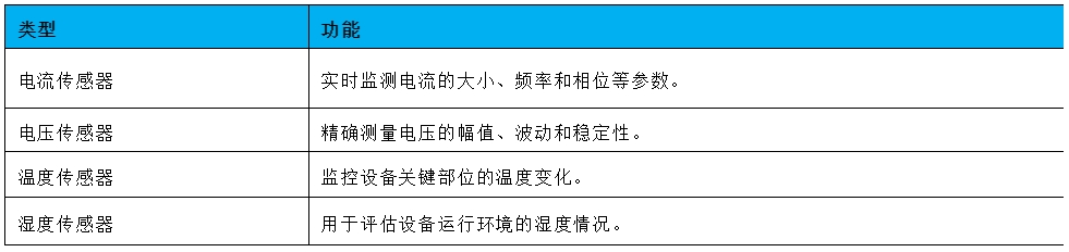 通過安裝在電力設(shè)備上的電流、電壓、濕度等各類傳感器,采集設(shè)備運(yùn)行參數(shù)。其功能見表3。