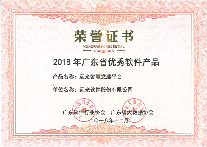 日前,廣東省軟件行業(yè)協(xié)會發(fā)布“2018年度優(yōu)秀軟件產(chǎn)品”名單,遠光軟件股份有限公司自主研發(fā)的“智慧黨建平臺”憑借創(chuàng)新的管理理念,對黨建工作的精細化管理和創(chuàng)新運用互聯(lián)網(wǎng)技術于黨建,獲得了行業(yè)和用戶的高度認可,被授予 “2018年度優(yōu)秀軟件產(chǎn)品”稱號。