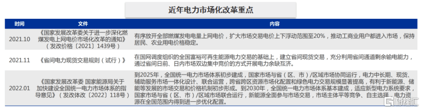 2019年9月,我國將煤電上網電價機制由標桿電價改為“基準浮動”機制。2021年10月8日,國常會即提出改革完善煤電價格市場化形成機制,提出燃煤發(fā)電量原則上全部進入市場,浮動范圍擴大至正負20%,高耗能行業(yè)電價不受限制。