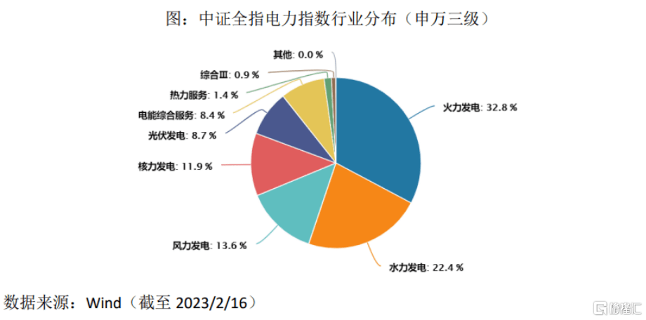 就細分行業(yè)分布來看,該指數成分股集中于電力行業(yè),重點關注火電、水電、新能源發(fā)電,并共同捕捉傳統(tǒng)發(fā)電和新能源發(fā)電領域的投資機會。其中,以權重最大的成分股長江電力(600900.SH)為例,火電占比達32.8%,水電占22%,風電占13%,光伏占比不到10%。