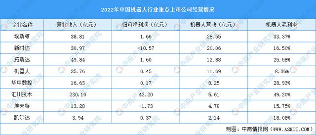 工業(yè)機(jī)器人行業(yè)重點(diǎn)上市公司經(jīng)營情況對比分析