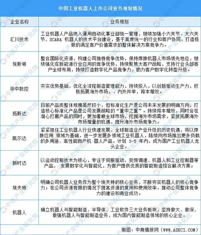 工業(yè)機(jī)器人行業(yè)重點(diǎn)上市公司業(yè)務(wù)規(guī)劃對比