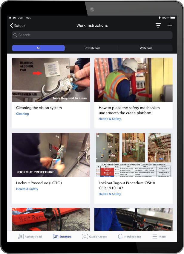 圖片: iPad平板電腦上的AVEVA Teamwork屏幕截圖 — 視頻圖書館