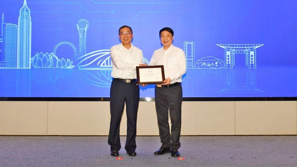 校長(zhǎng)楊桂山為謝億民院士頒發(fā)聘書(shū)