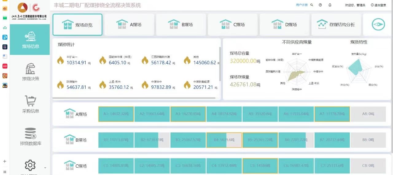 江投集團(tuán)所屬豐城電廠將配煤摻燒與燃料管理中的關(guān)鍵環(huán)節(jié)(燃料采購(gòu)、場(chǎng)存堆取、配煤摻燒)、燃燒優(yōu)化、排放達(dá)標(biāo)等因素統(tǒng)籌關(guān)聯(lián),大幅減少人員的分析和決策參與,提高了系統(tǒng)運(yùn)行效率和可靠性,最大程度提高經(jīng)濟(jì)煤種的摻燒比例。2023年1—10月,豐城電廠累計(jì)摻燒低灰熔點(diǎn)煤259.93萬(wàn)噸,全年低灰熔點(diǎn)摻燒比例比2020—2022年平均值增加約10%,全年可多摻燒低灰熔點(diǎn)煤19萬(wàn)噸,經(jīng)濟(jì)、社會(huì)效益顯著。