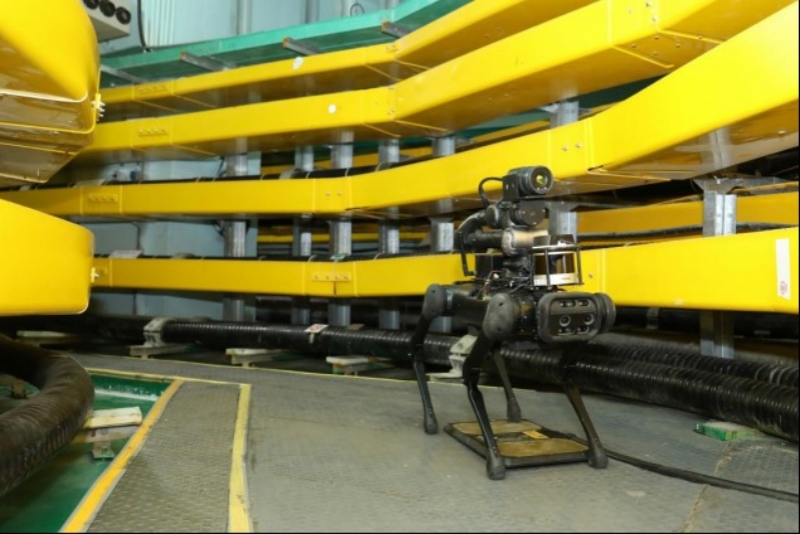 在位于南三環(huán)玉泉營的電力隧道內(nèi),一臺(tái)搭載感知設(shè)備機(jī)械臂的四足隧道巡檢機(jī)器人正沿著規(guī)劃好的巡檢路徑,對(duì)地下電力隧道環(huán)境及設(shè)備開展自主巡檢。