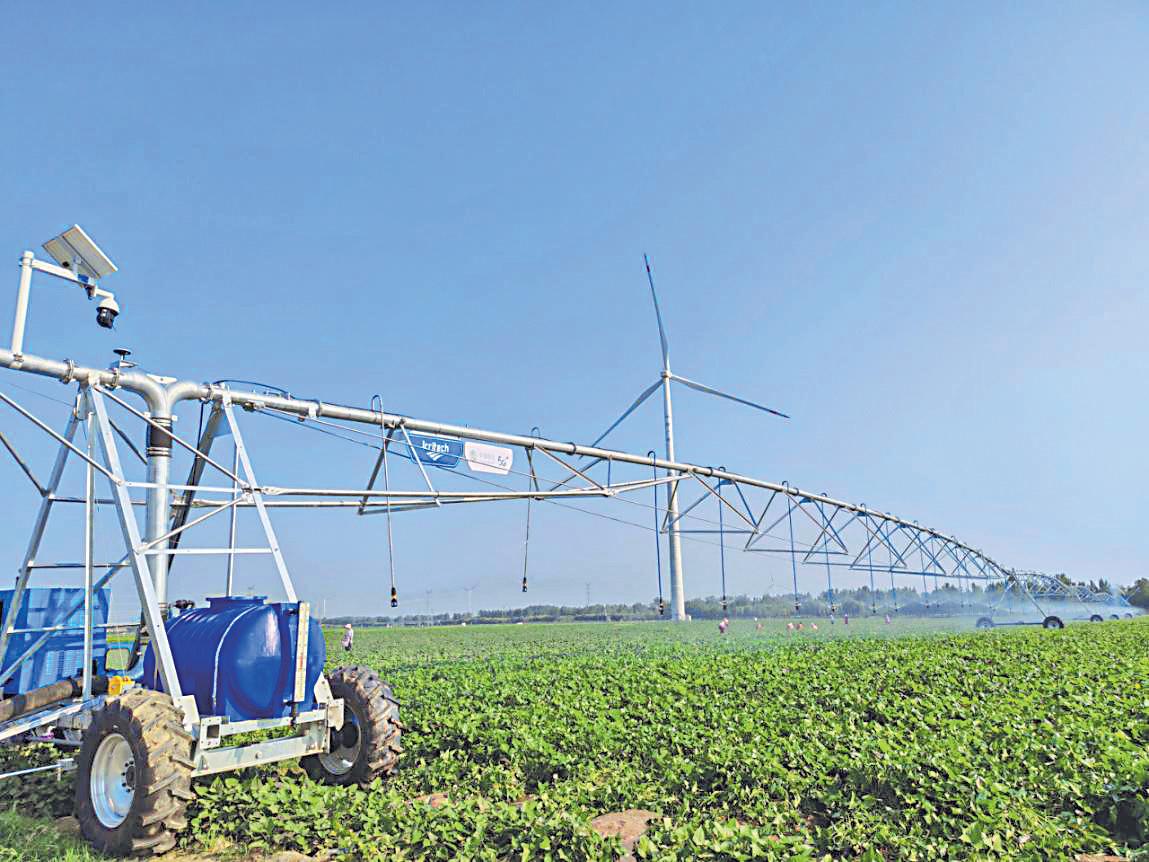 在延津縣,萬畝高標(biāo)準(zhǔn)農(nóng)田里的夏玉米已進(jìn)入灌漿期,該階段澆水增肥是增加產(chǎn)量、保障豐產(chǎn)豐收的關(guān)鍵。在塔鋪街道大柳樹村的高標(biāo)準(zhǔn)農(nóng)田里,幾十米寬的大型平移式噴灌機(jī)似巨鳥展翅,在田間緩緩移動(dòng),“羽翼”下的幾十個(gè)噴頭噴出均勻的“水霧墻”,滋潤(rùn)著莊稼,讓玉米“吃飽喝足”。中國(guó)移動(dòng)5G水肥一體化智能灌溉技術(shù)將灌溉和施肥兩個(gè)農(nóng)業(yè)生產(chǎn)過程融合在一起,不僅實(shí)現(xiàn)了澆地向澆苗轉(zhuǎn)變,還能將水連同肥料直接輸送到玉米地里,讓玉米“渴”了就“喝”、“餓”了就“吃”,實(shí)現(xiàn)了對(duì)農(nóng)田水分和養(yǎng)分的綜合管理。