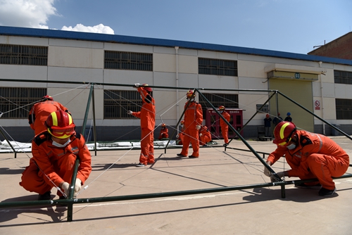 經(jīng)過(guò)20多分鐘的應(yīng)急演練,兩座防震帳篷按要求迅速搭建成功,1名受傷人員在緊急醫(yī)療救護(hù)后被迅速送往醫(yī)院。隨后,演習(xí)指揮部詳細(xì)檢查了防震帳篷搭設(shè)情況,聽(tīng)取了各搶險(xiǎn)隊(duì)伍巡檢匯報(bào)。