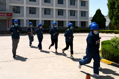 警報(bào)拉響后,來(lái)自來(lái)該廠的6個(gè)分場(chǎng)、3個(gè)部門的的職工迅速組織成應(yīng)急搶險(xiǎn)隊(duì)伍,向應(yīng)急指揮中心院內(nèi)集結(jié)。同時(shí),該廠非生產(chǎn)區(qū)域辦公樓的工作人員也沖出辦公場(chǎng)所,向應(yīng)急疏散避難場(chǎng)所內(nèi)緊急集結(jié)。