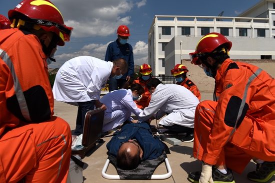 同時(shí),成立了1支應(yīng)急救援基干分隊(duì)在物資部院內(nèi)處搭設(shè)兩座防震帳篷,安裝照明設(shè)施,對(duì)立即按照現(xiàn)場(chǎng)指揮迅速救出被困人員、轉(zhuǎn)運(yùn)傷員并對(duì)傷員開(kāi)展了緊急救護(hù)。