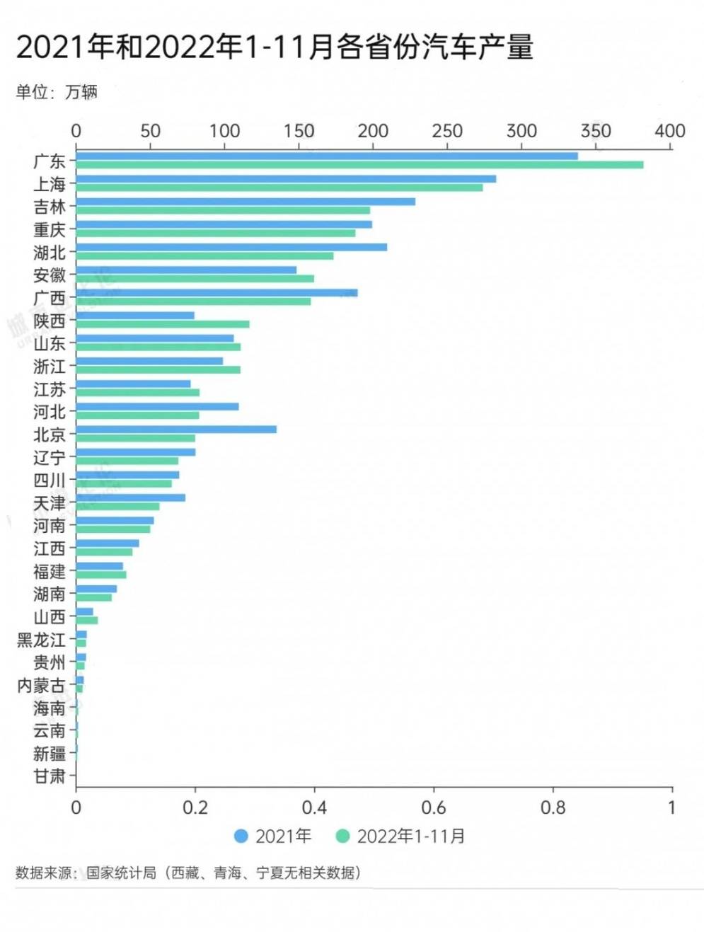 不僅如此,根據國家統(tǒng)計局公布的2022年1-11月汽車產量數據,湖北(173.77萬輛)已被重慶(188.55萬輛)超越,退居第五位。