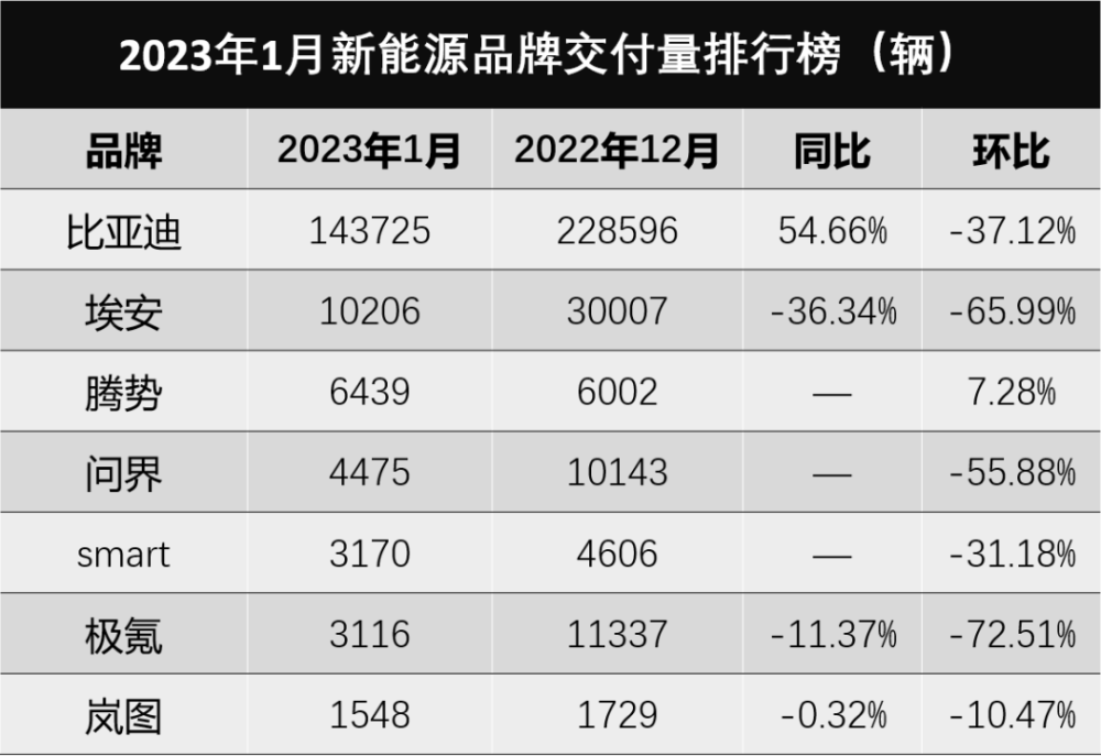 2023年的第一個(gè)月份,各家新能源車企也是準(zhǔn)時(shí)公布了銷量成績(jī),說(shuō)實(shí)話,基本都不怎么好看,受春節(jié)假期的影響,大部分車型都出現(xiàn)了“腰斬”的現(xiàn)象。