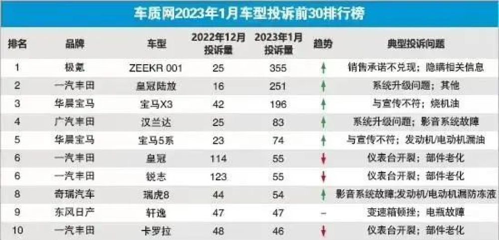 但另一方面,根據(jù)車質(zhì)網(wǎng)公布的2023年1月車型投訴排行榜,極氪001在1月份以355單的投訴量“榮登榜首”,登榜原因主要集中在銷售欺詐、承諾不兌現(xiàn)以及新車座椅鼓包等問(wèn)題,極氪如果想要在汽車市場(chǎng)上走得更遠(yuǎn),這個(gè)售前售后的問(wèn)題及時(shí)給消費(fèi)者解決。