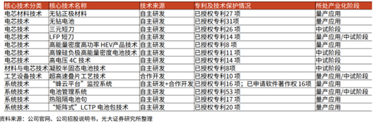 圖:蜂巢能源核心技術。來源:蜂巢能源招股說明書,光大證券