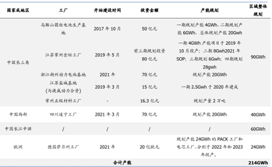 圖:蜂巢能源工廠規(guī)劃。資料來源:高工鋰電,國盛證券研究所