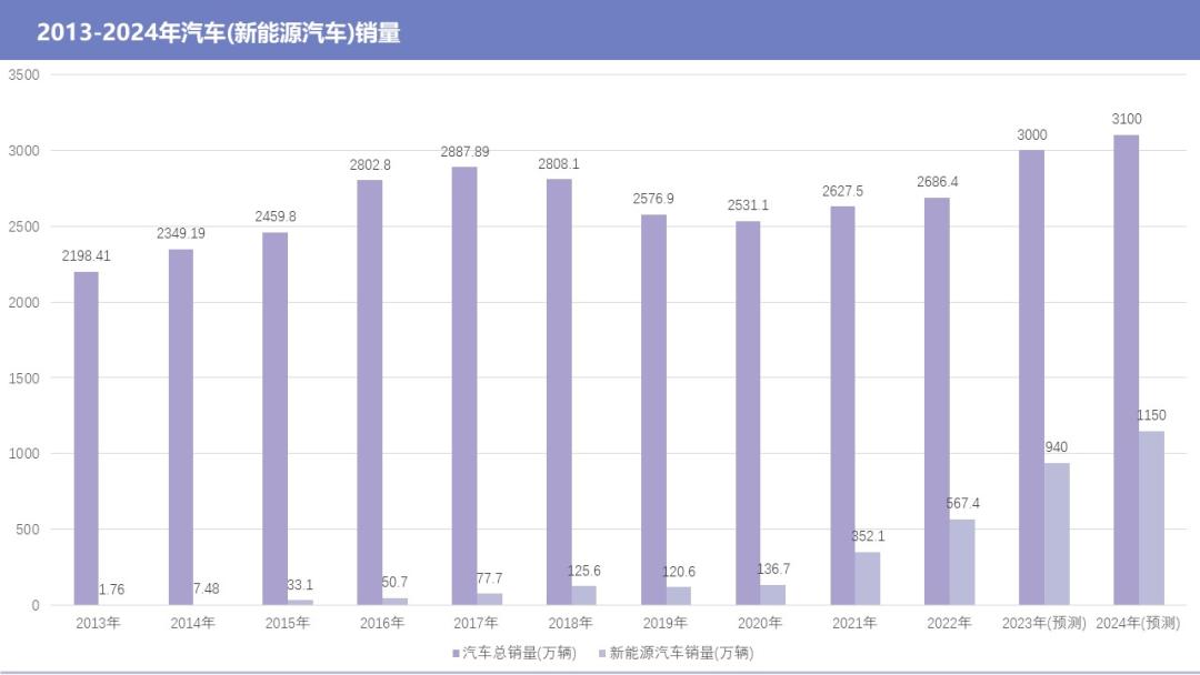 中國(guó)汽車工業(yè)協(xié)會(huì)預(yù)計(jì),2024年,汽車整體銷量將在3100萬輛左右,新能源乘用車市占率將達(dá)到43%。