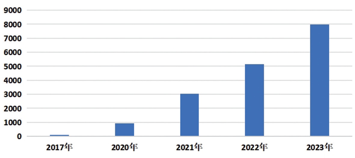 2017-2023年新上牌新能源車數(shù)量對比(單位:輛)