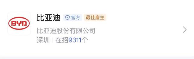 招聘軟件中關(guān)于比亞迪的招聘崗位總數(shù)為9311個(gè)
