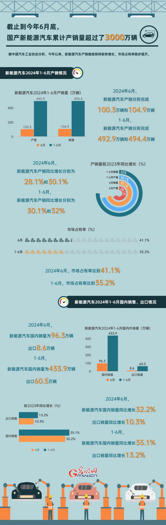 據(jù)中國(guó)汽車工業(yè)協(xié)會(huì)分析,今年以來(lái),新能源汽車產(chǎn)銷繼續(xù)保持較快增長(zhǎng),市場(chǎng)占有率穩(wěn)步提升。根據(jù)協(xié)會(huì)統(tǒng)計(jì),截止到今年6月底,國(guó)產(chǎn)新能源汽車?yán)塾?jì)產(chǎn)銷量超過(guò)了3000萬(wàn)輛。