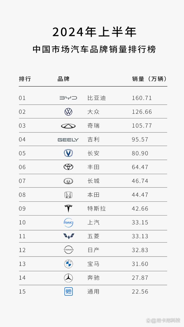 2024年上半年國(guó)內(nèi)車企銷量排名出爐,中國(guó)品牌集體崛起!