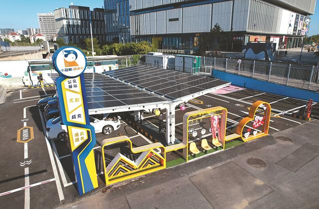 秦淮區(qū)卡子門(mén)公交主題“光儲(chǔ)充服”充能驛站,為國(guó)內(nèi)首座一體化公交充能驛站,建有1套裝機(jī)功率為35千瓦的光伏雨棚,同步配置10千瓦時(shí)儲(chǔ)能柜,全年可提供約3.5萬(wàn)千瓦時(shí)綠電,設(shè)置8個(gè)充電樁,可以同時(shí)為11輛新能源汽車(chē)充電。
