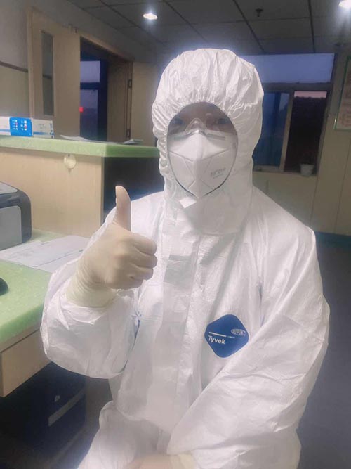 1月28日,負壓病房因人手不夠,在全院范圍緊急招募志愿者。負壓病房,需要“全副武裝”,每天和疑似病人近距離接觸,感染風險極大。但受老公經(jīng)常參加搶險救援戰(zhàn)斗的影響,她多次向領(lǐng)導(dǎo)提出申請,并遞交了入黨志愿書,終于獲批“逆行”進入最危險的負壓病房。接下來的20多天,她每天都要陪著10幾個病人,認真細致的檢查防護、登記、測體溫等等,但確診檢測是個比較漫長的過程,有的病人難免產(chǎn)生焦慮、急躁的情緒,她總是像對家人一樣做好撫慰,幫助他們共克時艱。20多天來,她以院為家,克服了各種工作和生活困難,比如在多重防護服下行動不便、呼吸不暢、口干舌燥,累了就倚著墻蹲會,困了就靠著椅背瞇會??傊瓦@樣神秘的消失在家人的視線中,有時連報個平安的電話都沒空打。