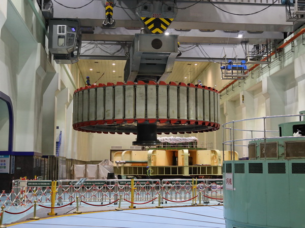 中國電力網(wǎng)訊 4月29日上午,記者在國網(wǎng)甘肅劉家峽水電廠廠房內(nèi)看到,在現(xiàn)場起重指揮的哨聲下,該廠700多噸的4號發(fā)電機轉(zhuǎn)子,經(jīng)過三起三落的試探性起吊后順利回裝至發(fā)電機定子中央,標志著該廠號4號機組A級檢修及定子改造工程進入了關(guān)鍵階段。