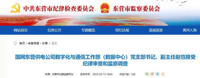 據(jù)廣饒縣紀(jì)委監(jiān)委消息:國(guó)網(wǎng)東營(yíng)供電公司數(shù)字化與通信工作部(數(shù)據(jù)中心)黨支部書記、副主任趙愷涉嫌嚴(yán)重違紀(jì)違法,目前正接受中共國(guó)網(wǎng)東營(yíng)供電公司紀(jì)委紀(jì)律審查和廣饒縣監(jiān)委監(jiān)察調(diào)查。