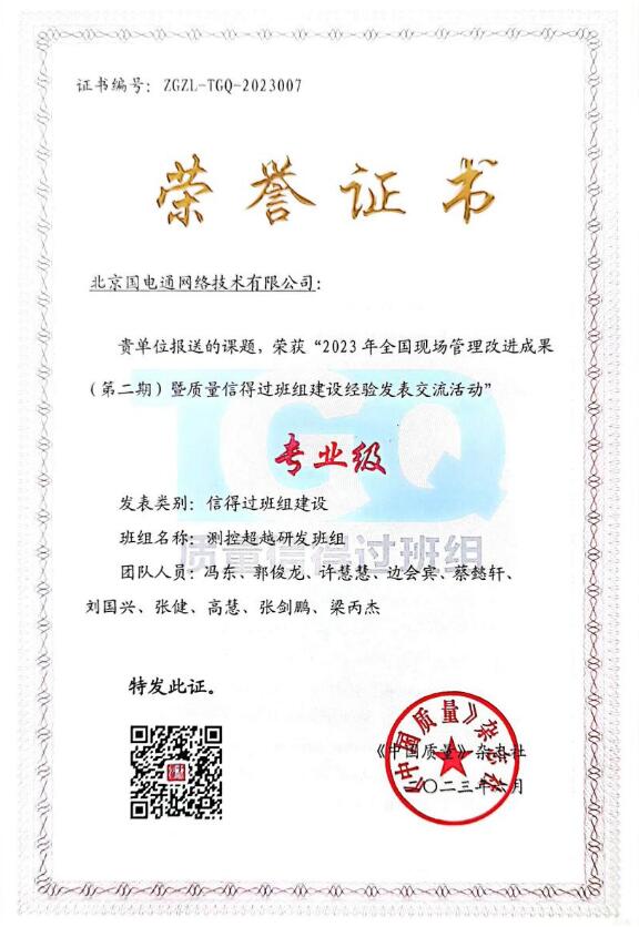 國(guó)網(wǎng)信產(chǎn)國(guó)電通“測(cè)控超越研發(fā)班組”獲得信得過班組建設(shè)二等獎(jiǎng)