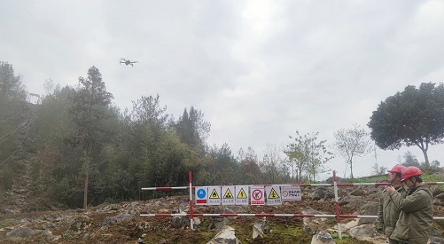 中國電力網(wǎng)訊 12月8日,在湖北省建始縣花坪鎮(zhèn)三岔槽村,湖北送變電工程有限公司恩施東-朝陽500千伏線路工程(恩施段)項目工人們翻山越嶺奔赴(T53號)基礎(chǔ)施工場,他們?nèi)讨坦呛L(fēng),運(yùn)用無人機(jī)對電網(wǎng)施工點(diǎn)位開展安全巡查,助力工程建設(shè)平穩(wěn)推進(jìn)。(郭秀春、郭暉)